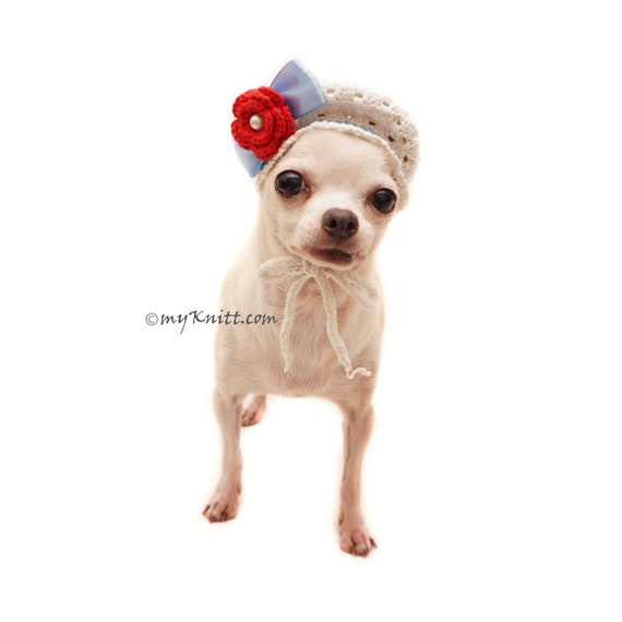 Mini Béret Pour Chien Chat Crochet Chapeau De Chien Fait à La Main Chapeau De Chihuahua Avec La Fleur Béret De Chat Crochet De Chapeau De Chat Par