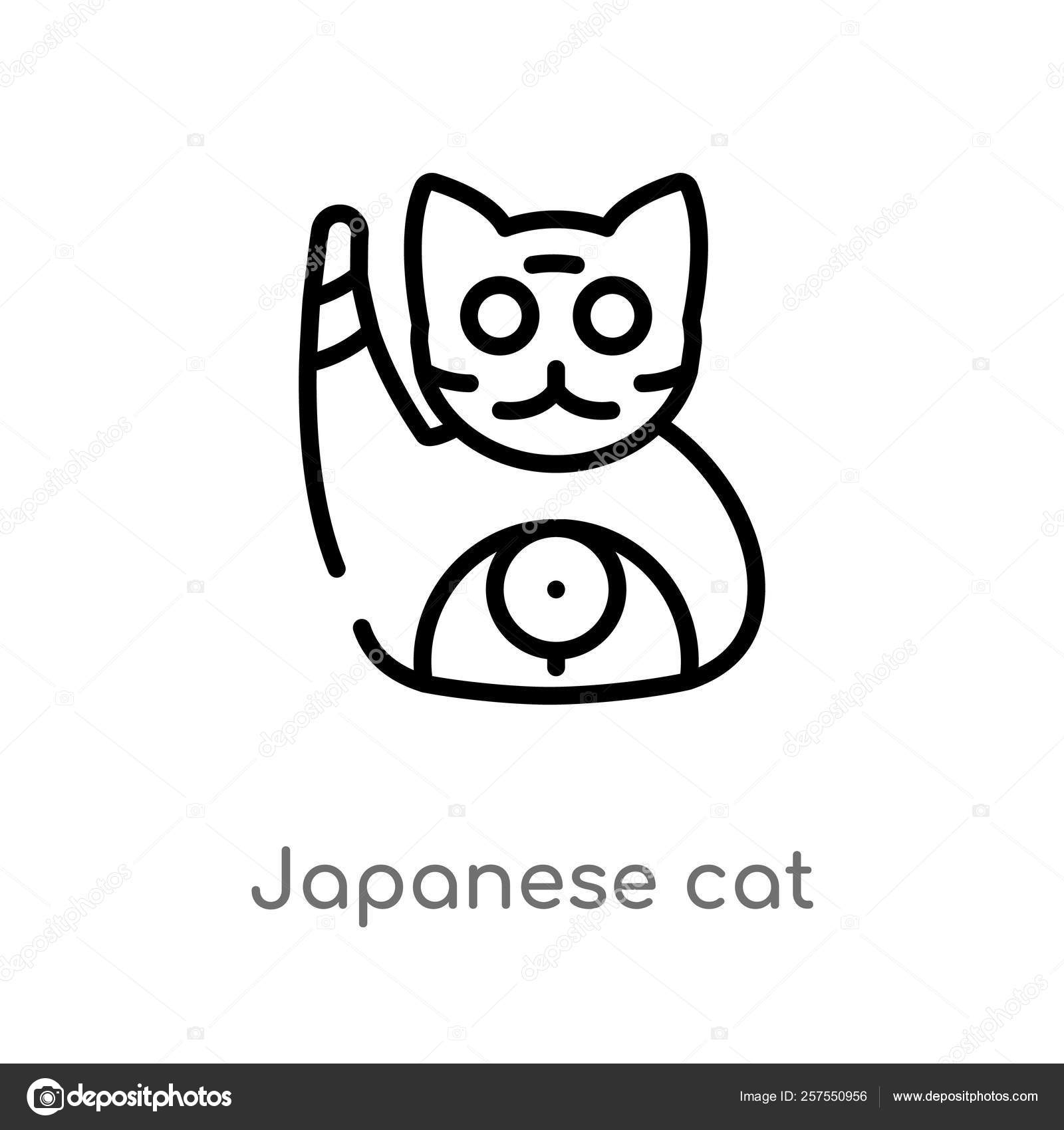 Contour Icône Vecteur Chat Japonais Isolé Noir Simple