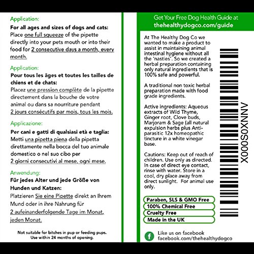 The Healthy Dog Co Vermifuge Naturel Pour Chiens Et Chats Plus Pratique Que Les Comprimés 1 2 Ans Dapprovisionnement Le Traitement Anti Vers Le