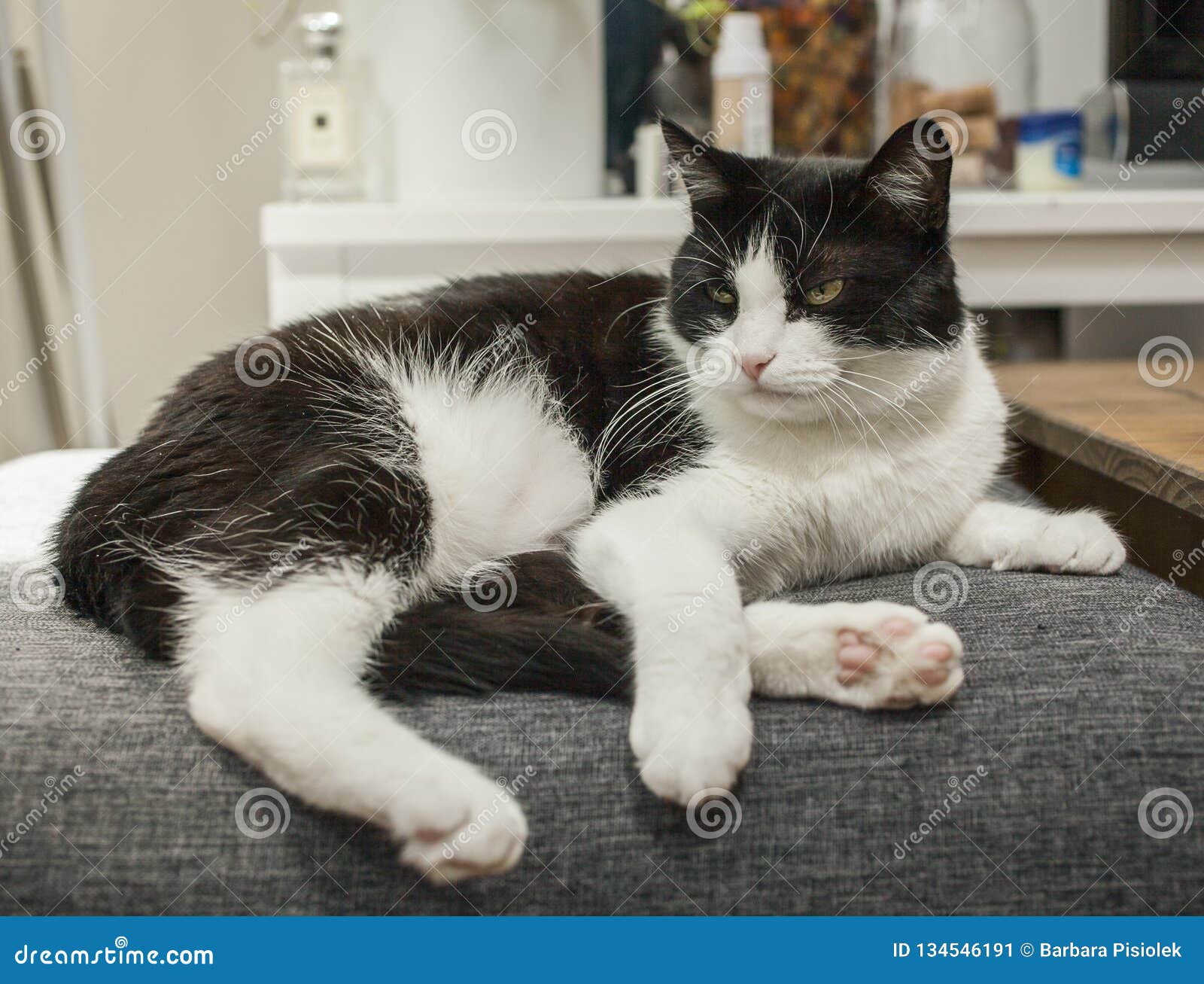Photo Libre De Droit De Une Vue De Mon Noir Et Blanc Chat