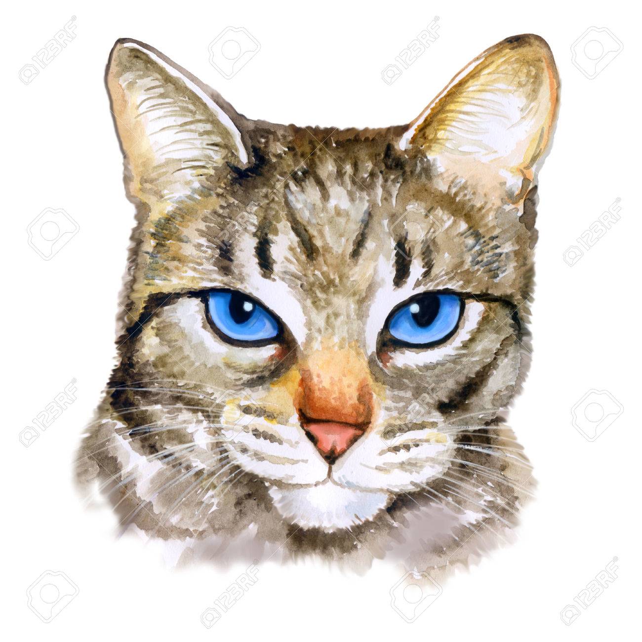 Aquarelle Colseup Portrait De Ojos Azules Chat Race Aux Yeux Bleus Isolé Sur Fond Blanc Hand Drawn Sweet Home Animal Des Couleurs Vives La