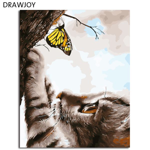 Acheter Drawjoy Encadré Animal Chat Diy Peinture Par Chiffres Sur Toile Peinture Et Calligraphie Mur Art Pour La Décoration Intérieure 40x50 De 3687