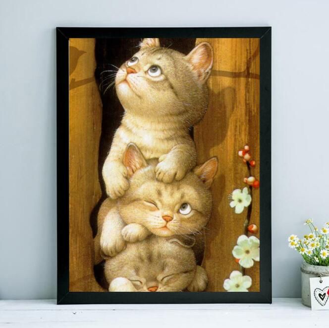 5d Diy Diamant Peinture 48x60cm 3 Chat Dessin Animé Diamant Broderie Animal Point De Croix Mosaïque Needlework Décor à La Maison Perceuse Lf 025