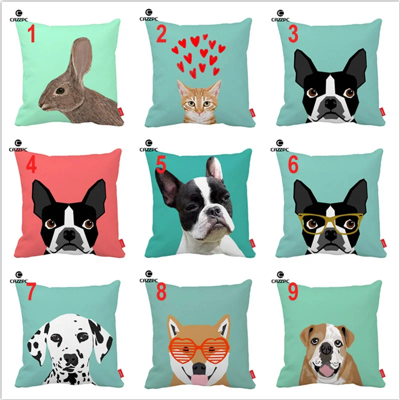 573 40 De Réductionturquoise Mignon Lapin De Dessin Animé Chat Bulldog Animaux Imprimer Personnalisé Voiture Housse De Coussin Décoratif Taie
